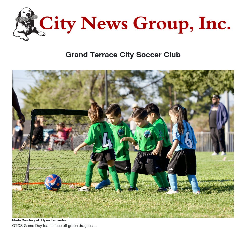 Grand Terrace City Soccer Club by Elysia Fernandez - City News Group, Inc.