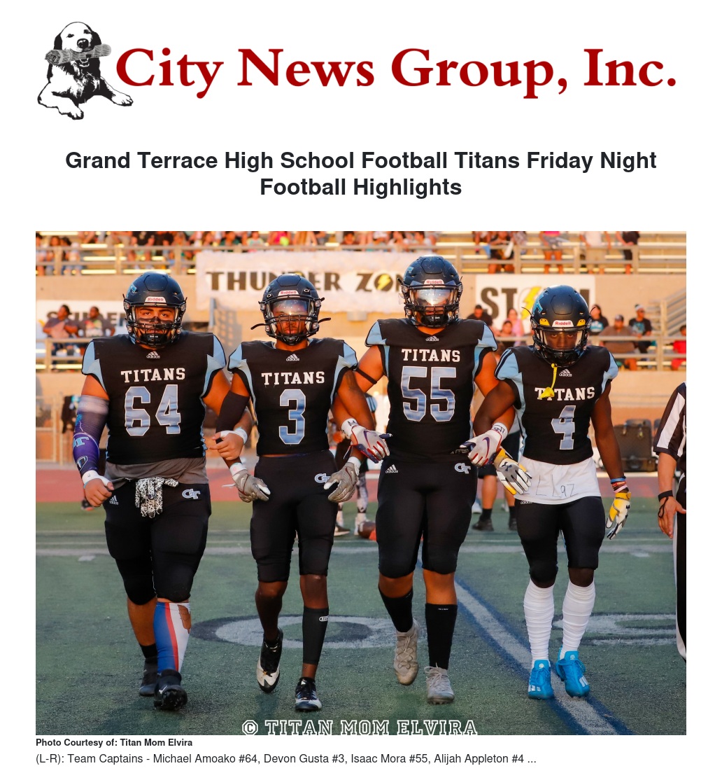 Grand Terrace High School Football Titans Friday Night Football Highlights by By: Titan Mom Elvira, Michael Dosey Jr., Christian Valenzuela - City News Group, Inc.