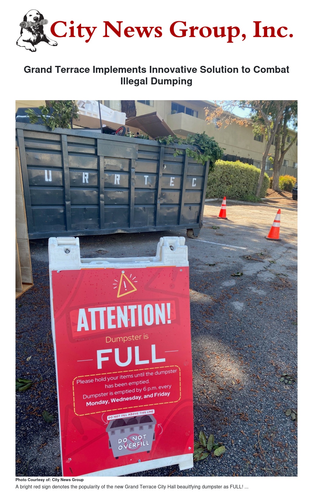 However, by introducing centralized dumpsters, Grand Terrace eliminated the need for residents to seek alternative dumping sites. The dumpsters at City Hall serve as a convenient and legal disposal option for residents, significantly reducing incidents of illegal dumping across the city.