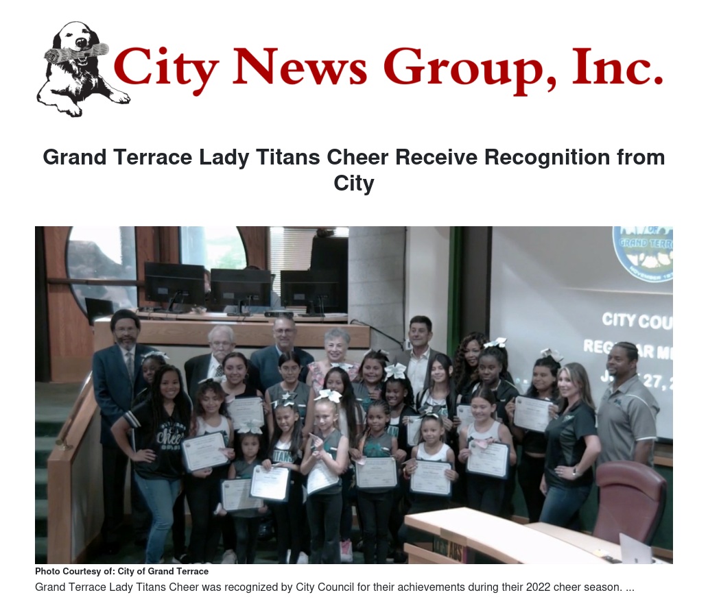 Grand Terrace Lady Titans Cheer Receive Recognition from City by Anna P. Duff - City News Group, Inc.