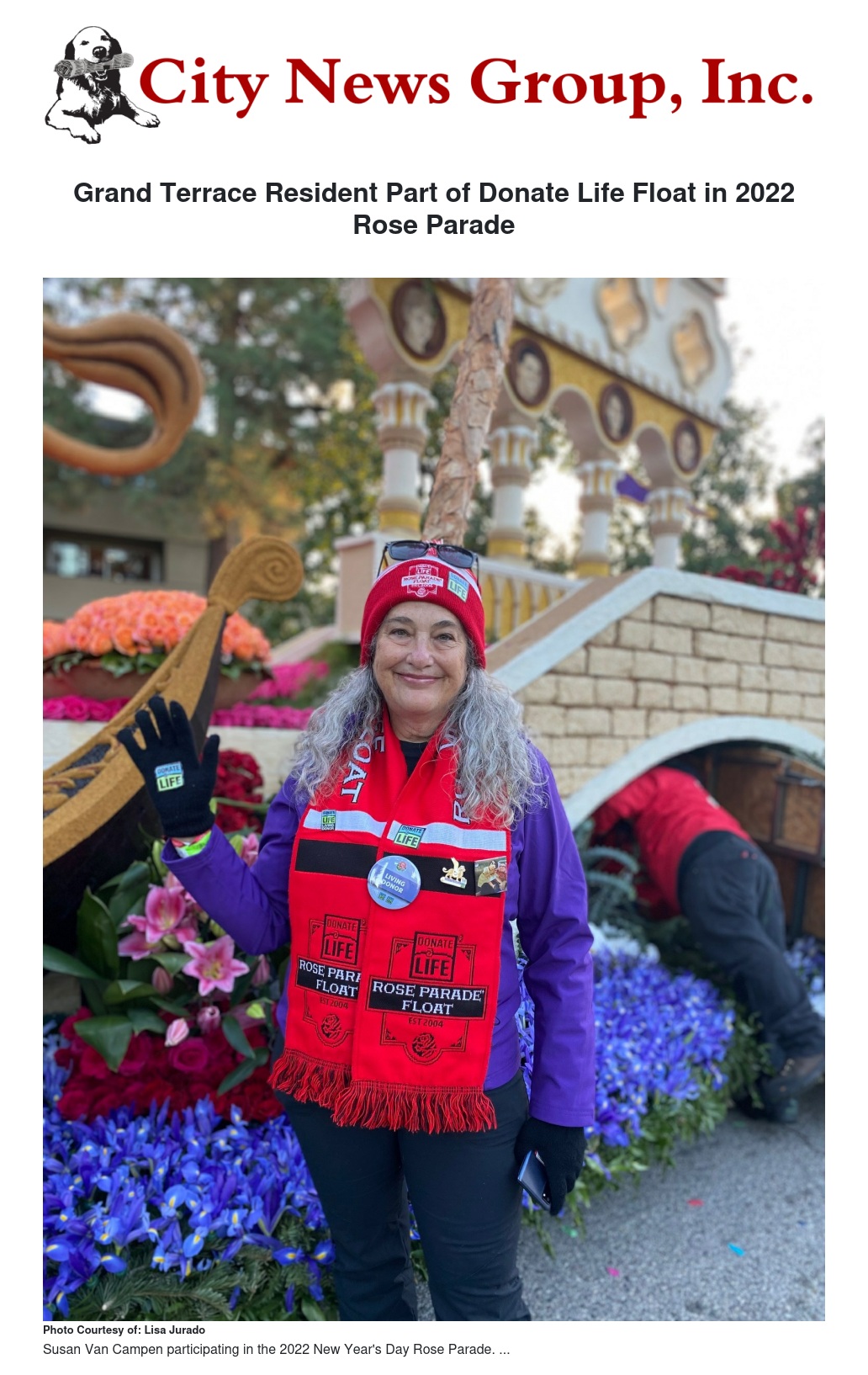 Grand Terrace Resident Part of Donate Life Float in 2022 Rose Parade by Lisa Jurado - City News Group, Inc.