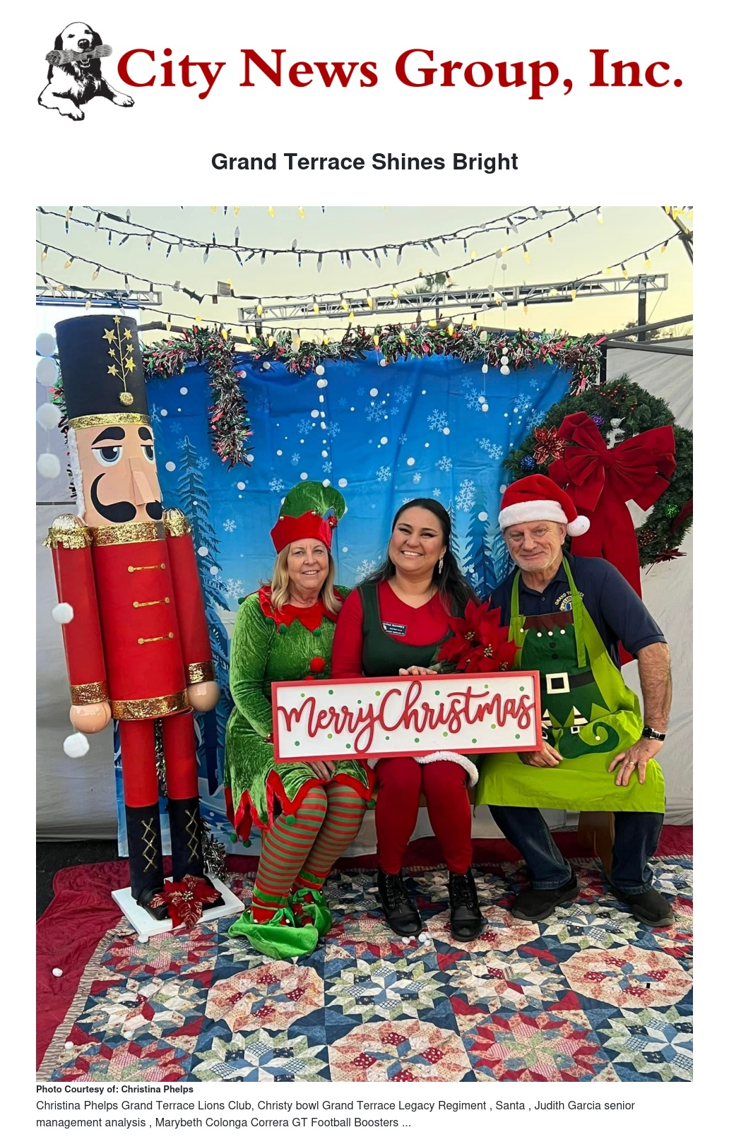 This past week, the annual Light Up Grand Terrace Light Festival transformed the heart of the city into a winter wonderland, drawing in a vibrant crowd eager to celebrate the holiday season. The event was a huge success, showcasing the spirit of community and togetherness that defines Grand Terrace.