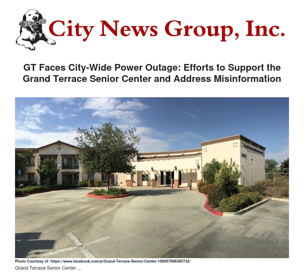 GT Faces City-Wide Power Outage: Efforts to Support the Grand Terrace Senior Center and Address Misinformation by Hattie Strong - City News Group, Inc.