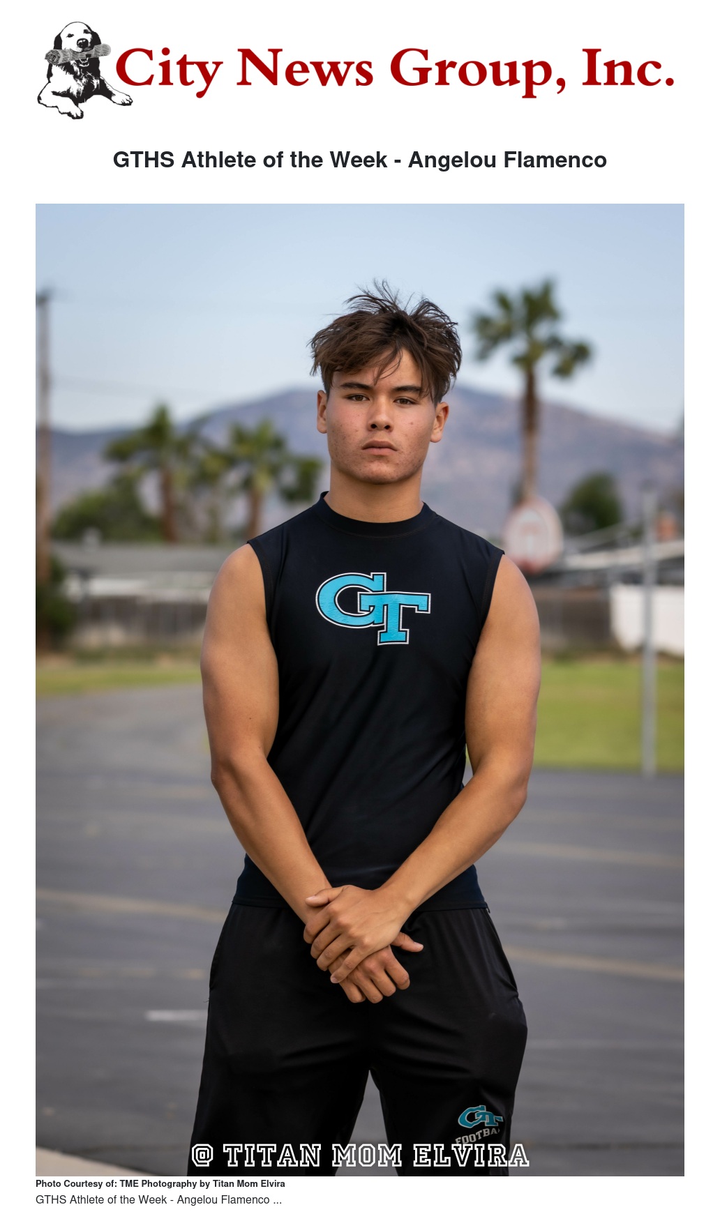Angelou Flamenco, a 16 year old Junior at Grand Terrace High School, is a shining example of dedication both in the classroom and on the field. Maintaining an impressive 3.5 GPA while balancing a busy athletic schedule, Angelou continues to excel as a Titan.