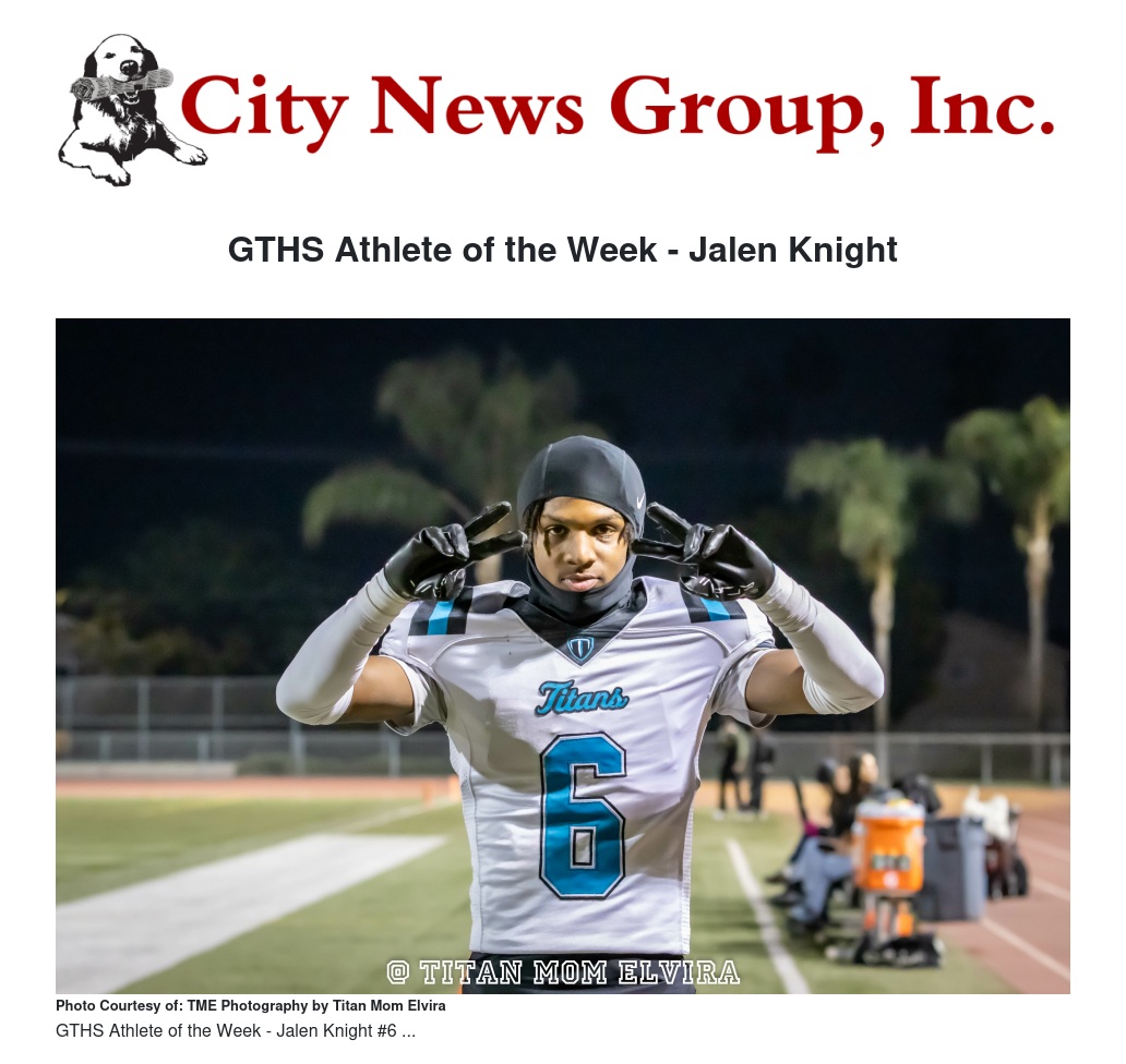 GTHS Athlete of the Week - Jalen Knight by Titan Mom Elvira - City News Group, Inc.