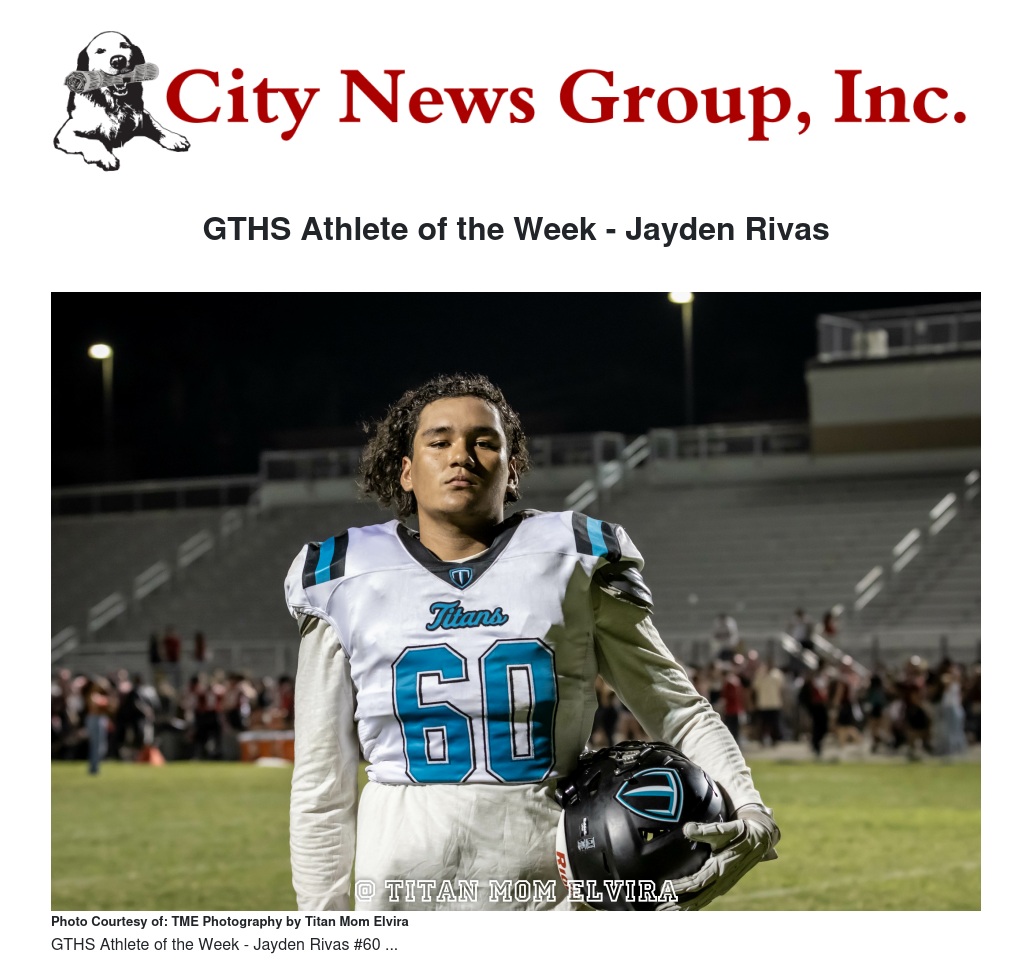 We wish Jayden, all the best in his future endeavors—the best is yet to come for this Titan!
