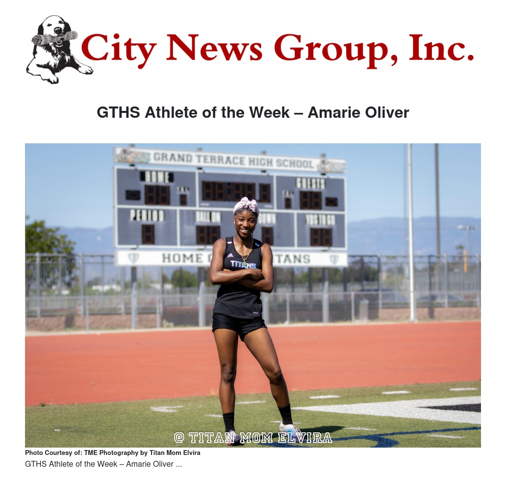 It's impressive to see this young Lady Titan, Amarie Oliver's dedication to both academics and athletics despite her busy schedule. Playing sports since she was 8 years old and now competing in Track & Field at GTHS has proven she is a hardworking individual.