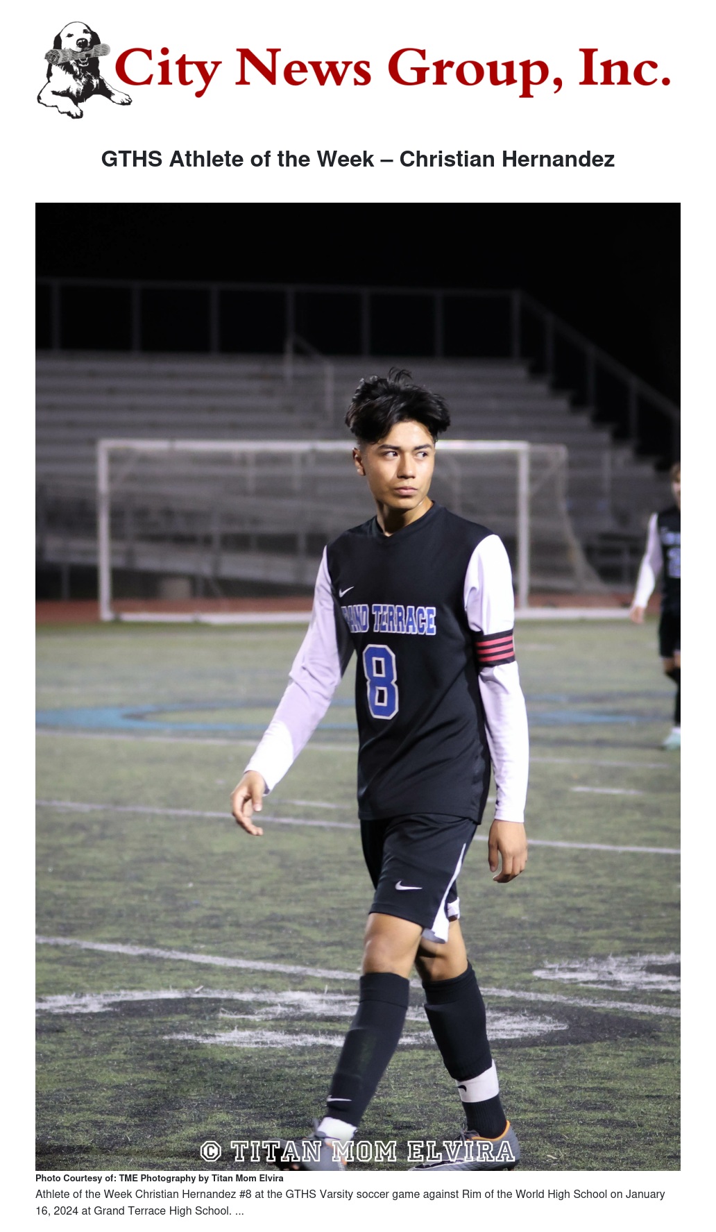 Christian Hernandez is an outstanding student athlete and has earned this week’s GTHS Athlete of the Week for his achievements and dedication to both academics and sports!