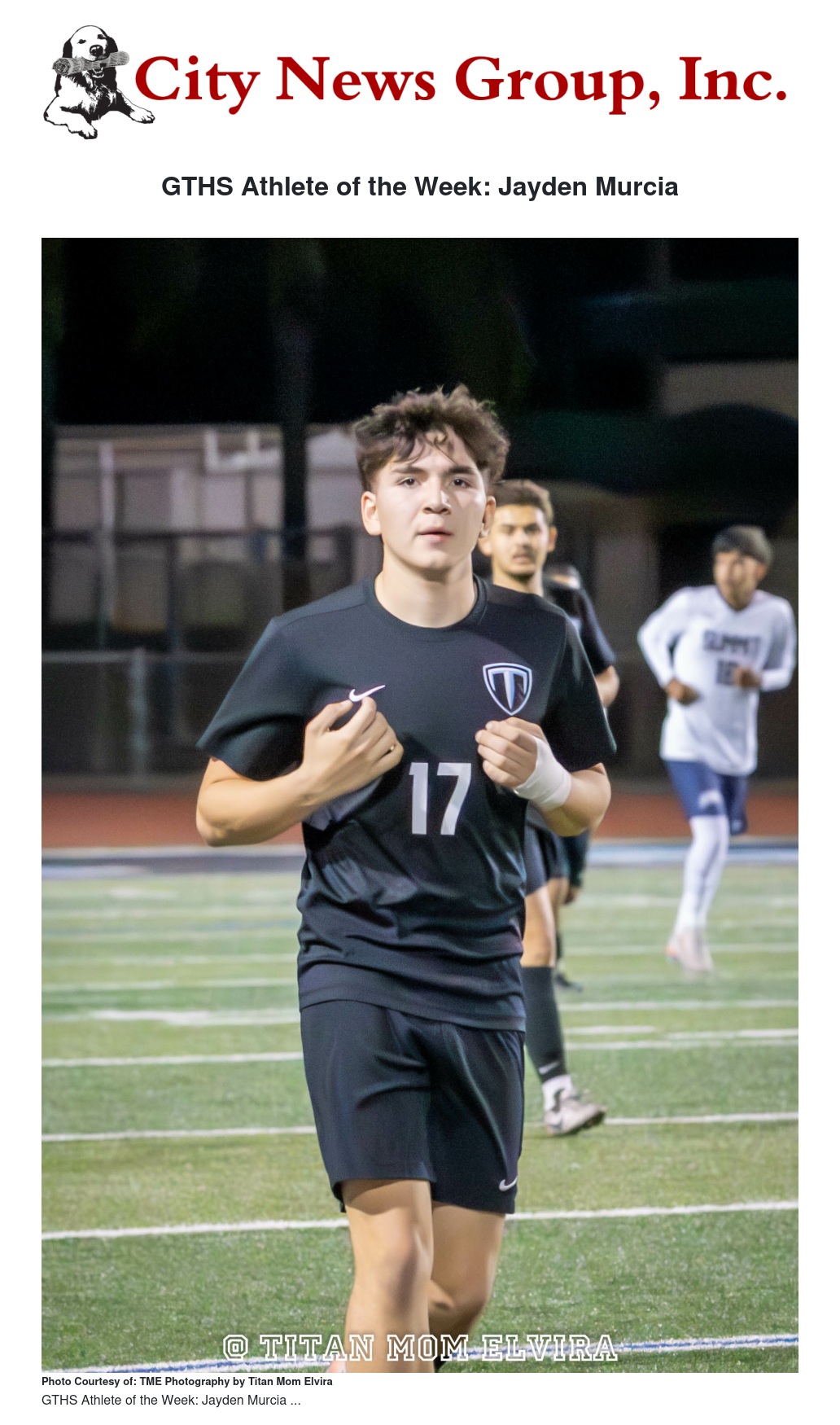 Jayden also encourages the community to get involved, saying, “Come support all GTHS sports!”