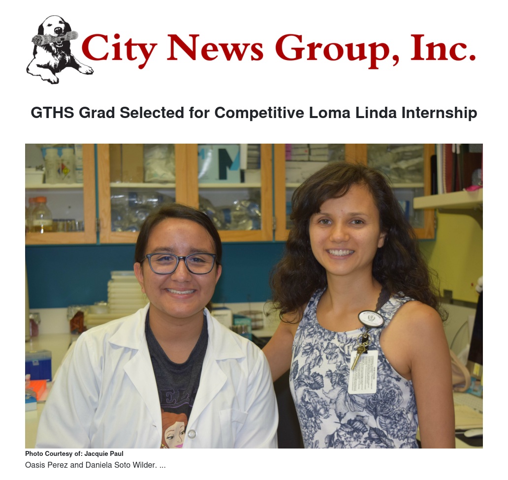 Recent Grand Terrace High School graduate Oasis Perez plans to one day become a medical researcher and professor. She’s getting a great start as one of only 15 students chosen for the highly competitive Apprenticeship Bridge to College (ABC) internship program at Loma Linda University.
