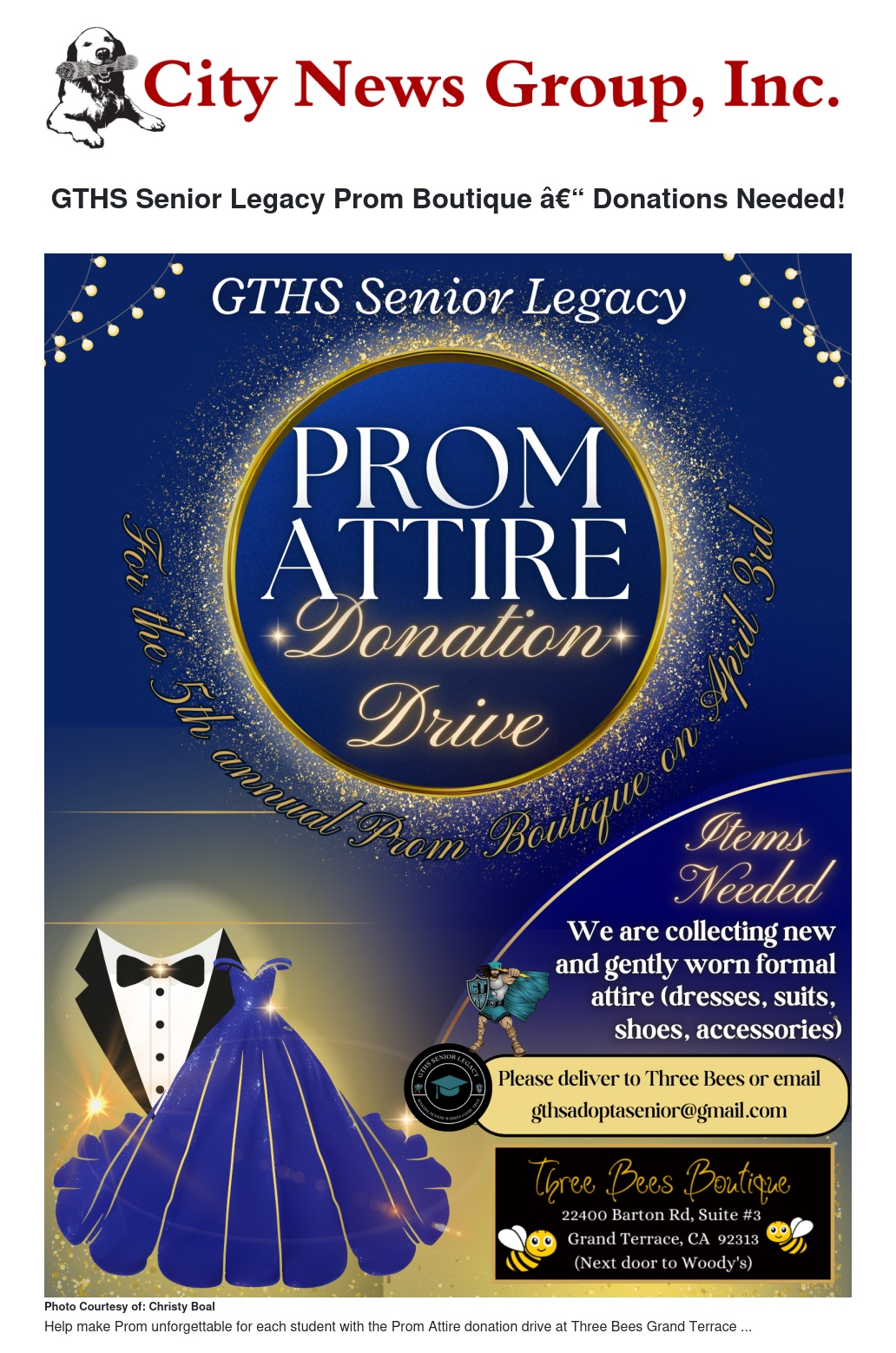 Let's come together to make prom a magical and inclusive experience for all GTHS seniors. Your support will not only outfit students but also foster a sense of community spirit that defines Grand Terrace. Join us in spreading joy and making prom an unforgettable occasion!