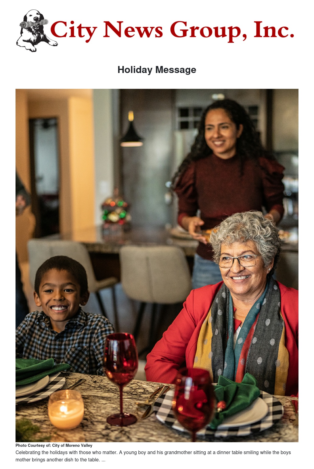 Holiday Message by Ruby Stephenson - City News Group, Inc.