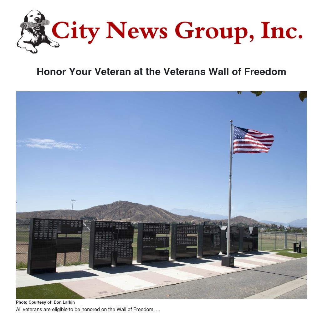 Honor Your Veteran at the Veterans Wall of Freedom by Don Larkin - City News Group, Inc.