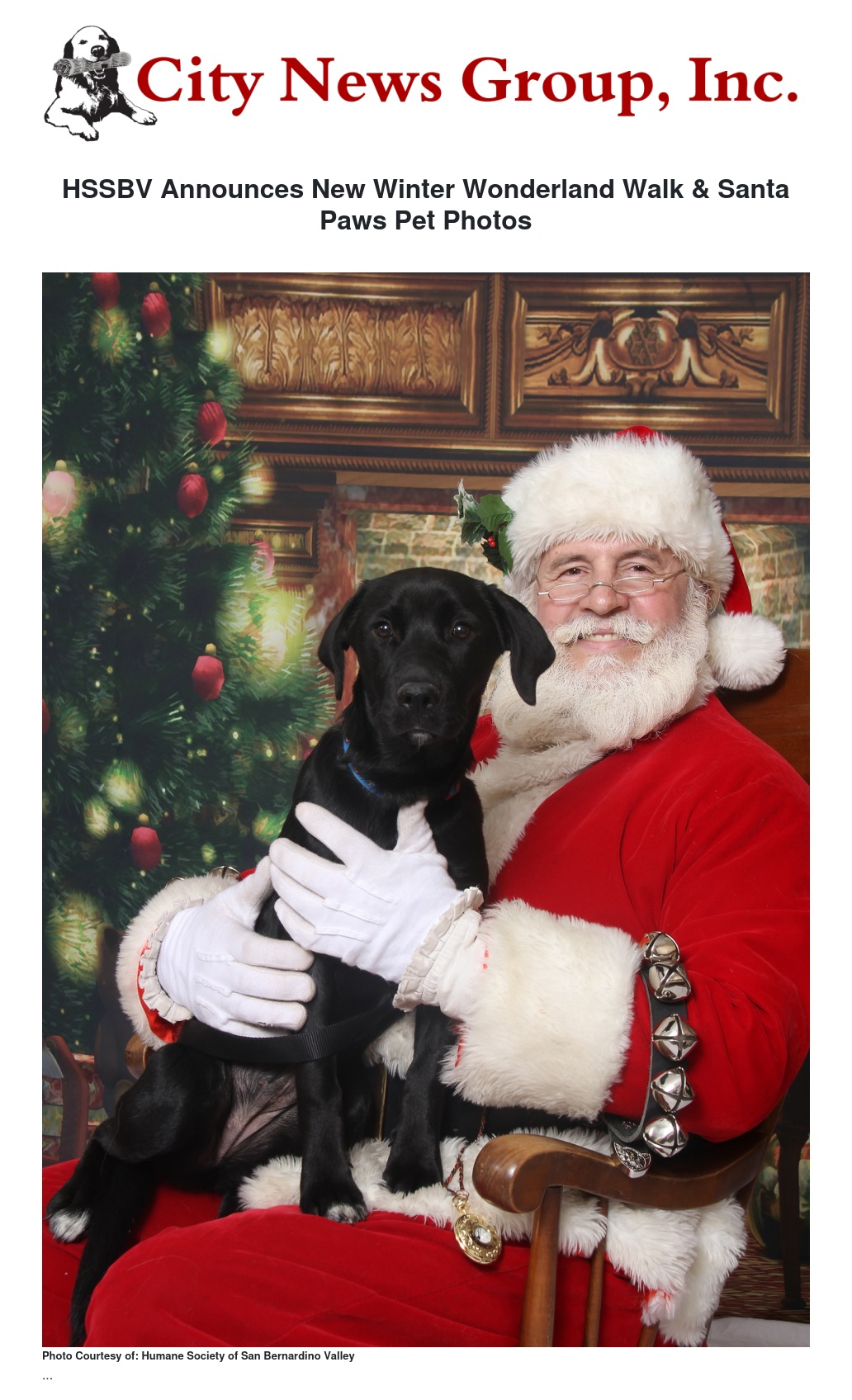 You and your pets are invited to the Humane Society of San Bernardino Valley (HSSBV) Winter Wonderland Walk & Santa Paws Pet Photos presented by San Manuel Band of Mission Indians on Saturday, November 18, 2023 at the Humane Society of San Bernardino Valley (374 W. Orange Show Road, San Bernardino). This event, formerly Santa Paws Pet Photos & Holiday Boutique, will have all of the fun of the regular photos with Santa, combined with everything you loved about our Spring Walk for the Animals and even more!
