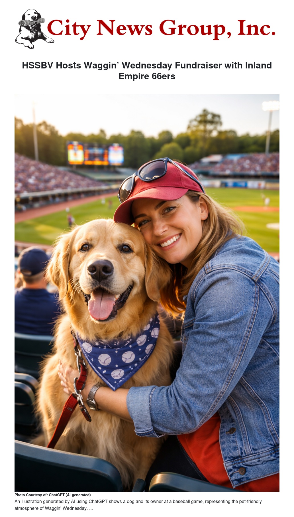 HSSBV Hosts Waggin’ Wednesday Fundraiser with Inland Empire 66ers by Jill Henderson - City News Group, Inc.