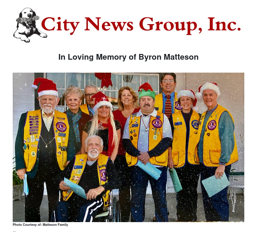 Byron Roger Matteson passed away peacefully in his home located in Grand Terrace, CA surrounded by his loving family and a few close friends on December 14th, 2020 at the age of 83 due to a non-COVID related illness.