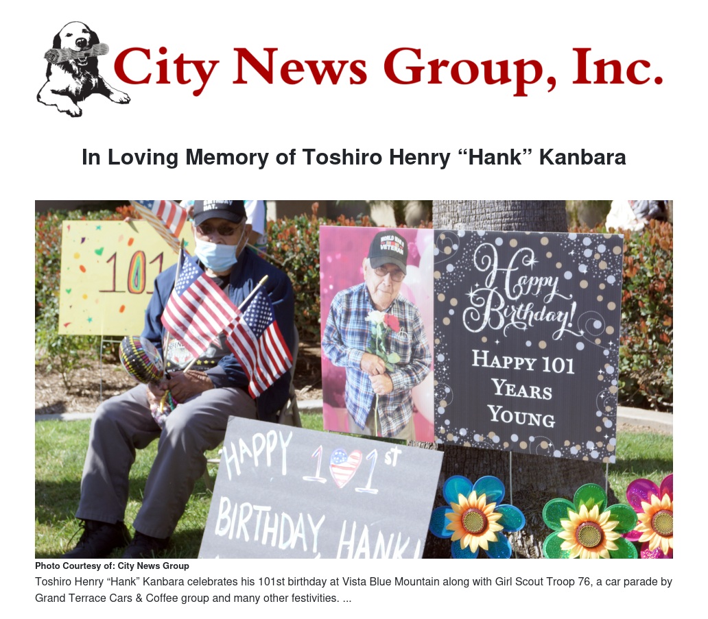 On July 10, 2021, local resident and World War II Veteran Toshiro Henry “Hank” Kanbara passed away at the age of 101-years-old.