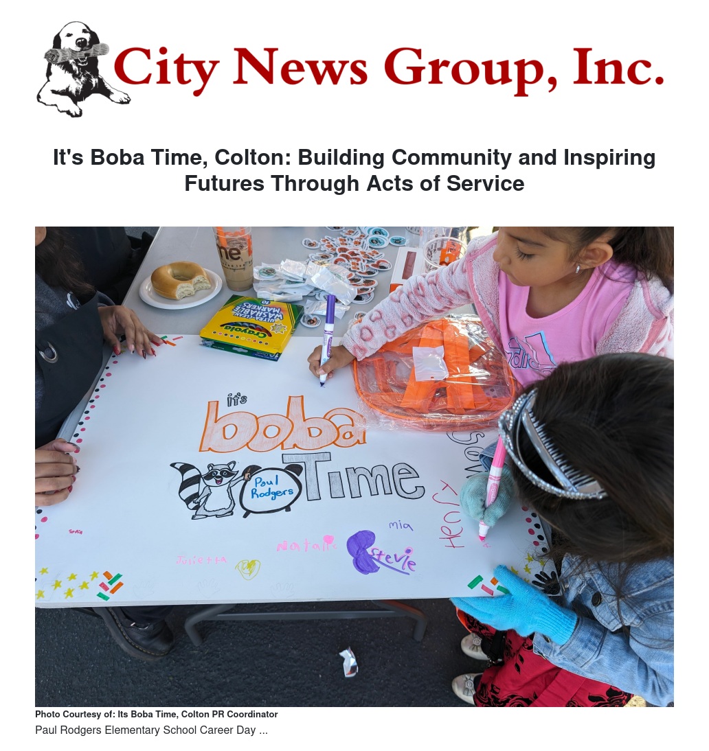 It's Boba Time, Colton: Building Community and Inspiring Futures Through Acts of Service by Its Boba Time, Colton PR Coordinator - City News Group, Inc.