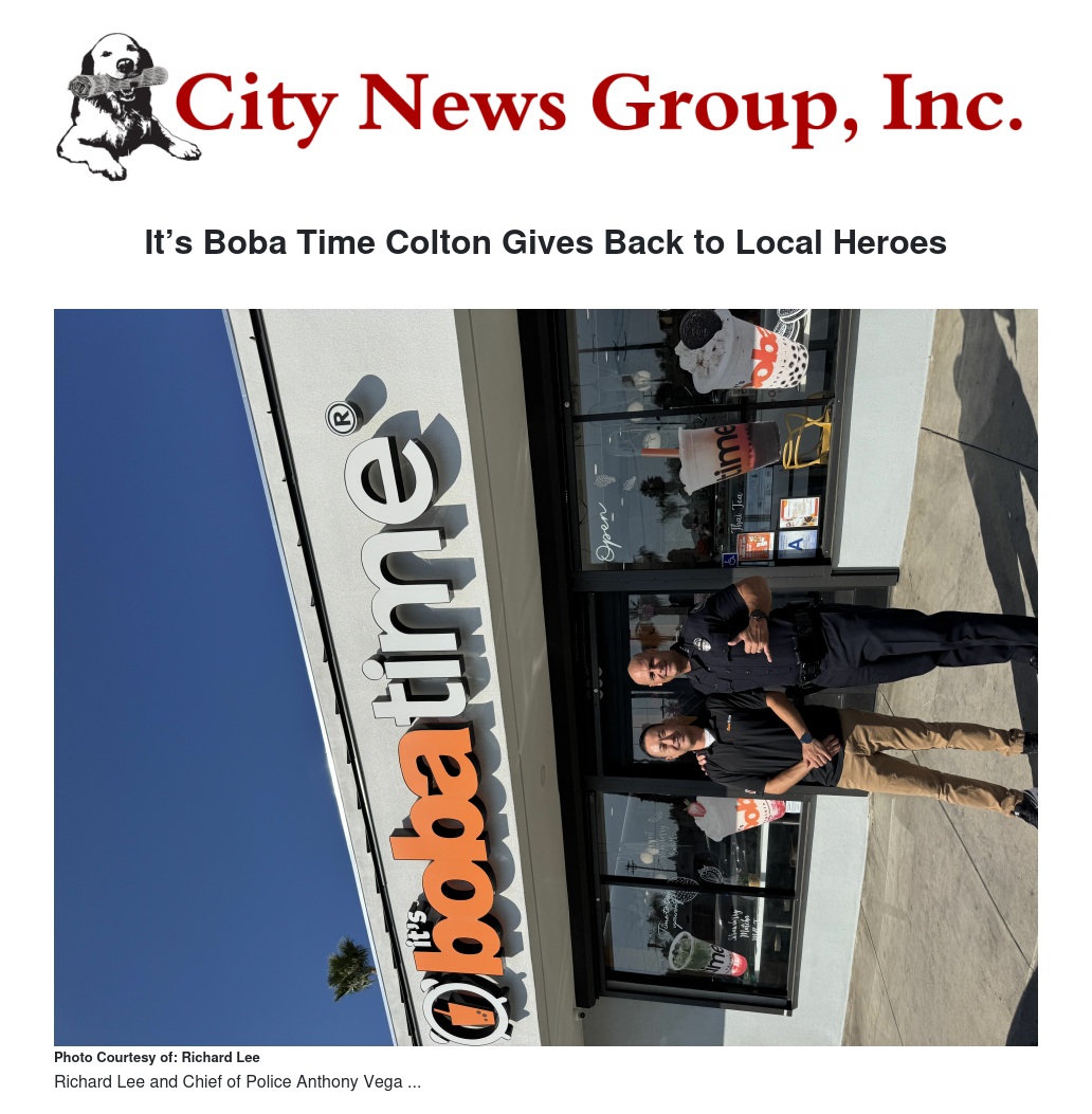 It’s Boba Time Colton proudly hosted its third annual appreciation event for the Colton Police Department, continuing a heartfelt tradition of giving back to those who protect and serve the community.