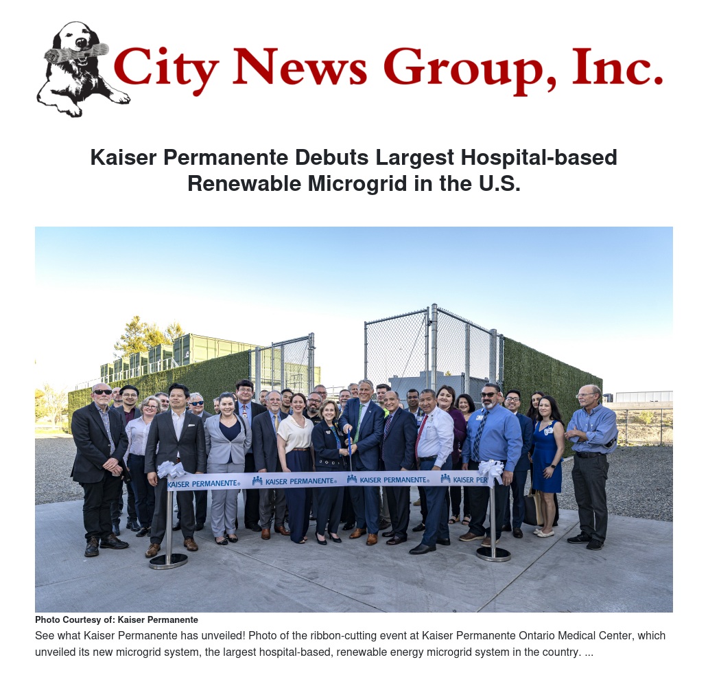 Kaiser Permanente Debuts Largest Hospital-based Renewable Microgrid in the U.S. by Carol Soudah - City News Group, Inc.
