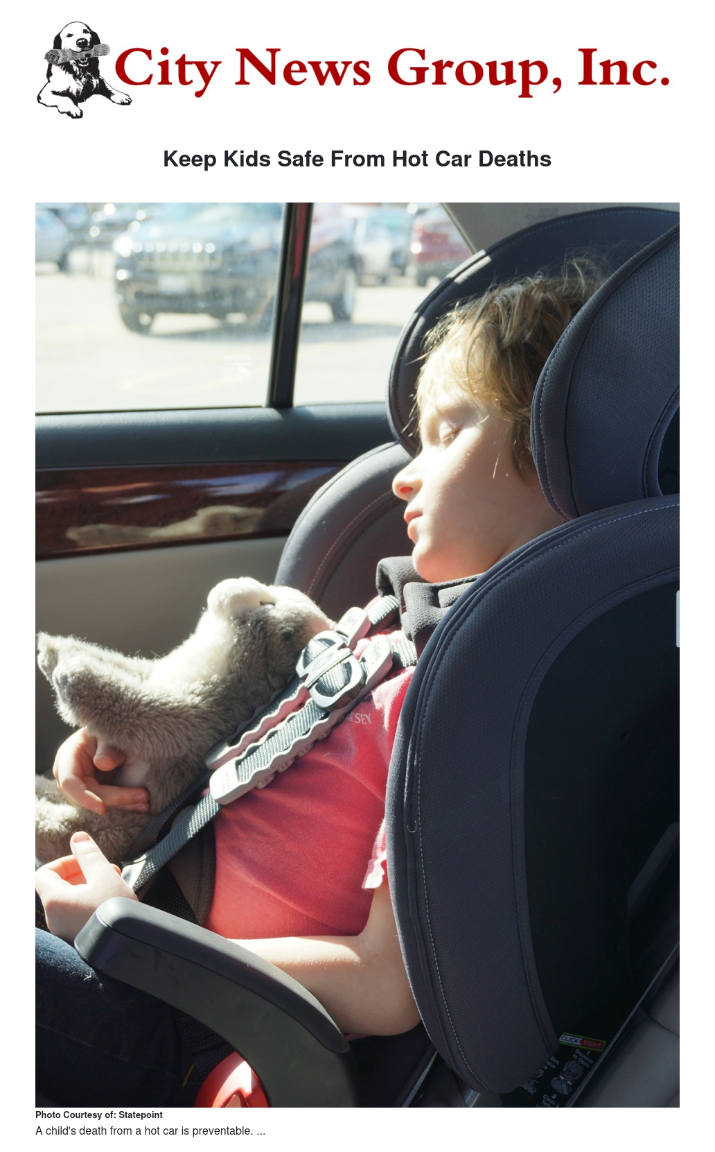 Acquaint yourself and anyone who cares for your child with free resources providing vital information about vehicular heatstroke. For example, NSC recently released “Children in Hot Cars,” an online training course providing information about why cars heat up so quickly, why children in particular can succumb to increasing temperatures in cars, and what parents, caregivers and others can do to prevent these needless deaths. The course is interactive, free and can be completed in 15 minutes or less, with a certificate of completion available at the end. It can be found at nsc.org/hotcars. For more information about pediatric vehicular heatstroke, visit noheatstroke.org.