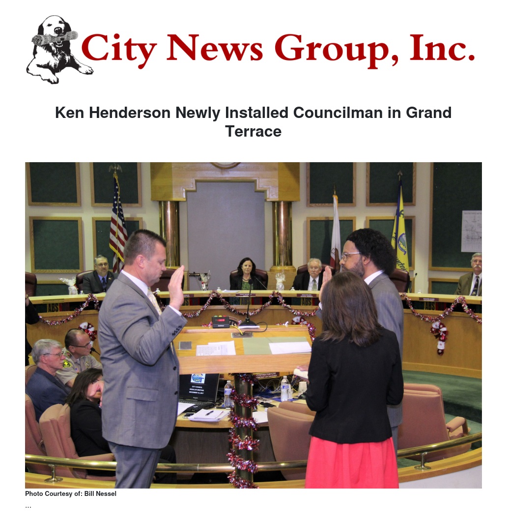 Ken Henderson Newly Installed Councilman in Grand Terrace by Jim Miller - City News Group, Inc.
