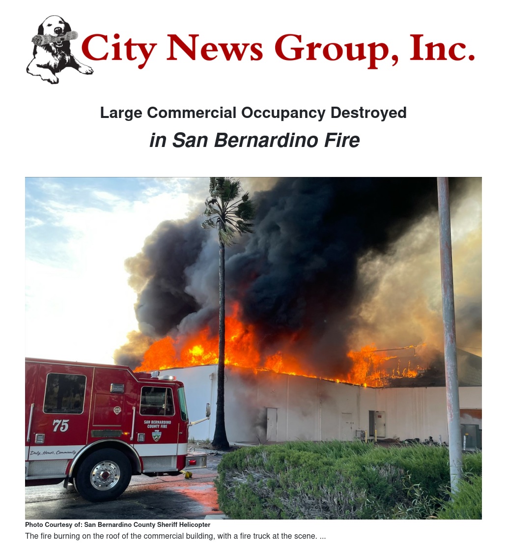 On Sunday, March 13, 2022, San Bernardino County Fire crews were dispatched to a reported commercial fire near University & the 215 Freeway, San Bernardino. Crews quickly arrived to find heavy smoke showing from a large two-story commercial occupancy.