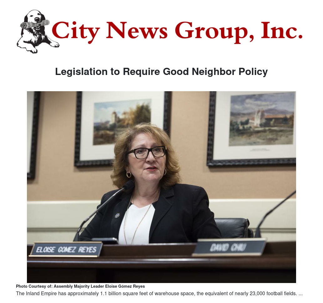 AB 1547, legislation by Assemblymember Reyes (D-San Bernardino) establishes a good neighbor policy for warehouse developments, which would require responsible environmental standards to mitigate the impact of warehouse developments on schools, residential neighborhoods and the surrounding environment. Specifically, AB 1547 requires the following prior to the approval of a warehouse development: