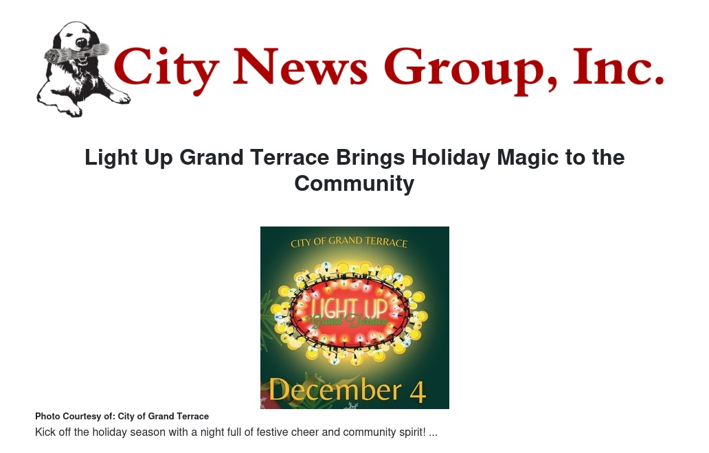 Light Up Grand Terrace Brings Holiday Magic to the Community by Ruby Stephenson - City News Group, Inc.