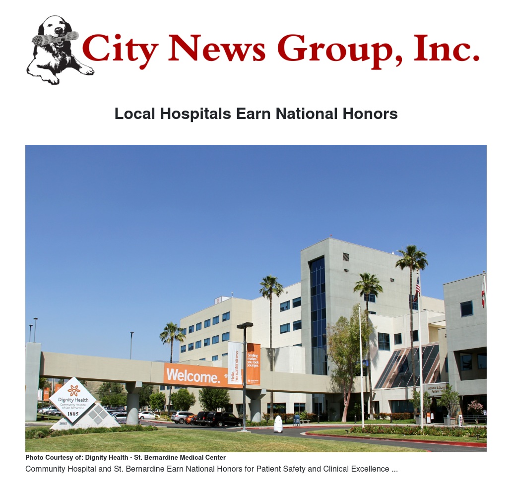 Dignity Health - Community Hospital of SanBernardino (CHSB) and Dignity Health - St. Bernardine Medical Center (SBMC) announcedsignificant accolades for its commitment to patient safety and clinical distinction. CHSB has