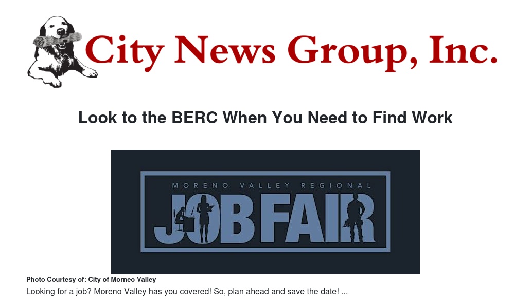 Look to the BERC When You Need to Find Work by William Cortez - City News Group, Inc.