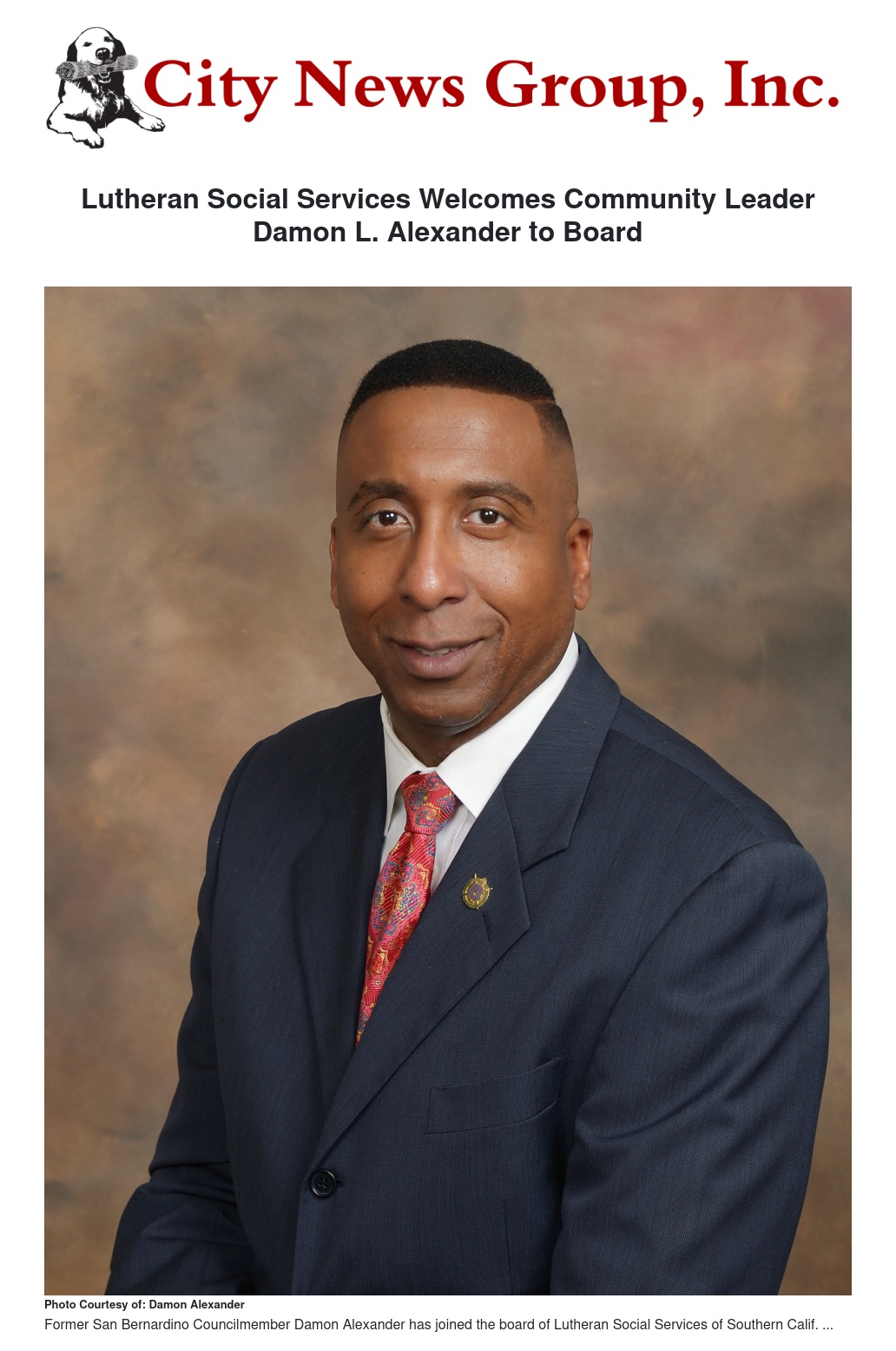 Lutheran Social Services of Southern California (LSSSC) - a leading provider of social services programs in Southern California – announces former San Bernardino council member Damon L. Alexander, Th.M, MPA to its board of directors.