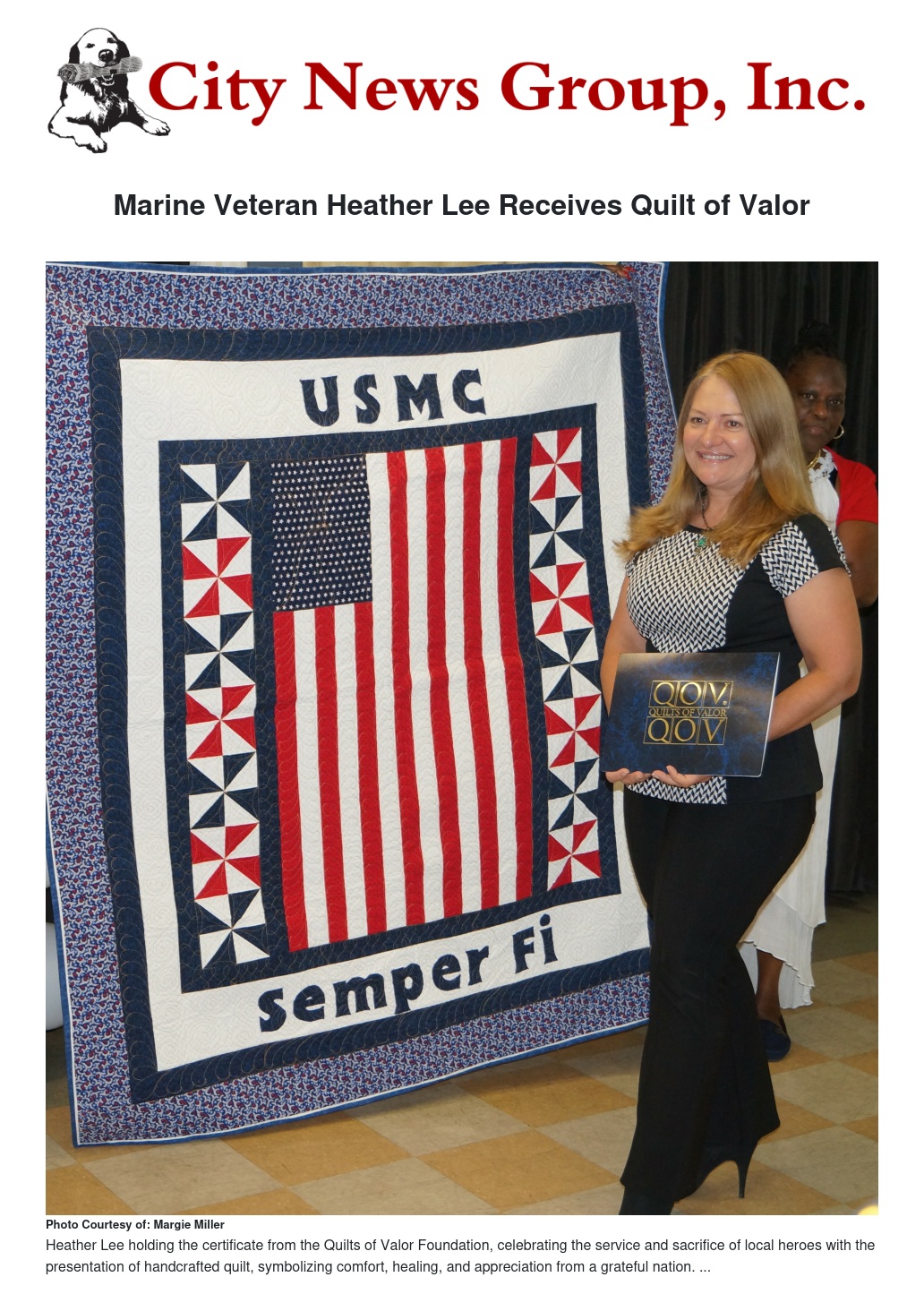 When Heather Lee stood at the Janet Goeske Center to receive her Quilt of Valor, she was honored not only for her service in the U.S. Marine Corps but also for her continued dedication to community and family.