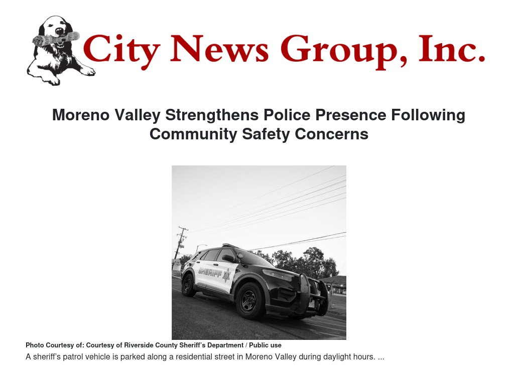 Moreno Valley Strengthens Police Presence Following Community Safety Concerns by William Cortez - City News Group, Inc.