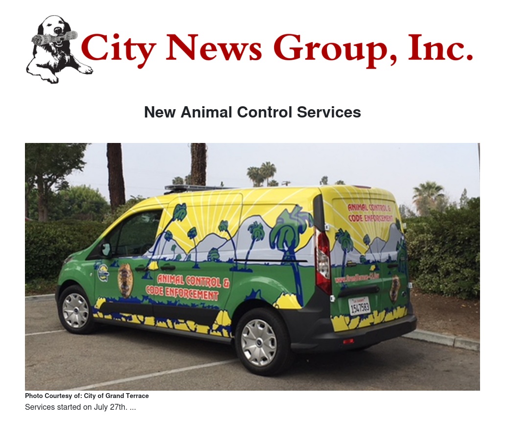 Well, the city of Grand Terrace has announced the new Animal Control Services! The new Animal Control Services will help our furry friends when in need and provide even more services for the community.