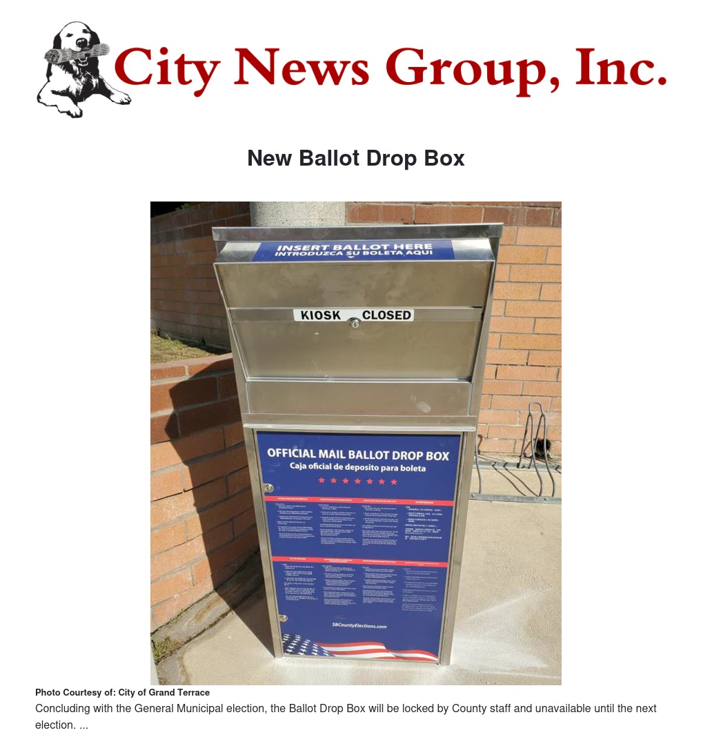 New Ballot Drop Box by City of Grand Terrace - City News Group, Inc.