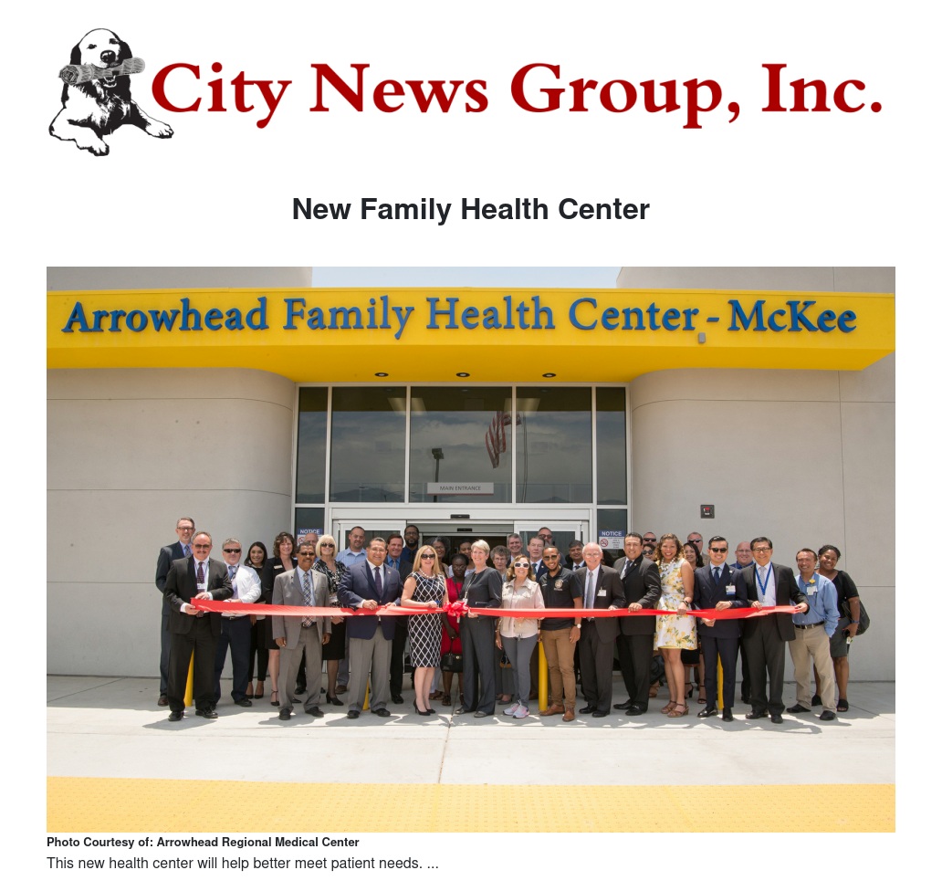 Arrowhead Regional Medical Center (ARMC) held a grand opening celebration and ribbon cutting on July 12, at the new Arrowhead Family Health Center – McKee, in San Bernardino.