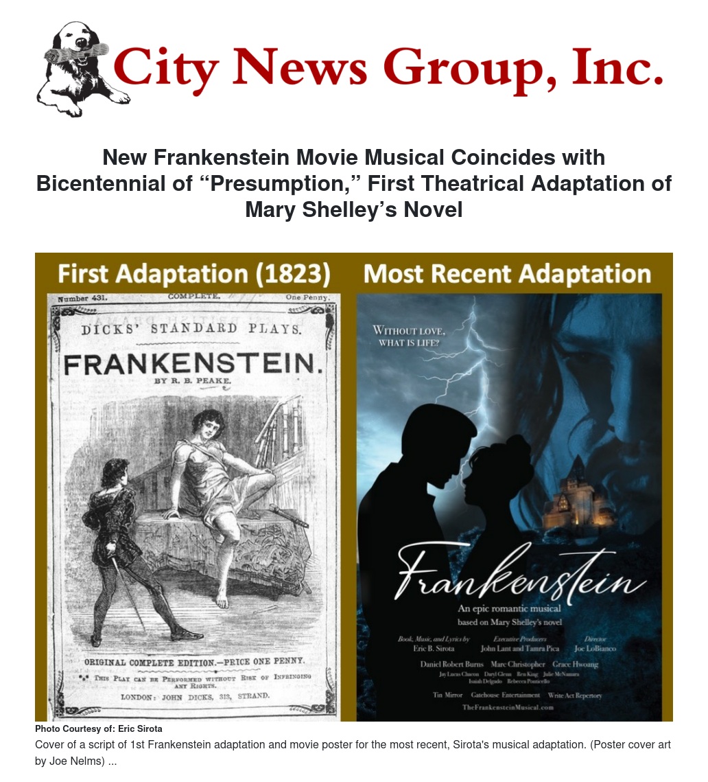 New Frankenstein Movie Musical Coincides with Bicentennial of “Presumption,” First Theatrical Adaptation of Mary Shelley’s Novel by Frankenstein Staff and Producers - City News Group, Inc.