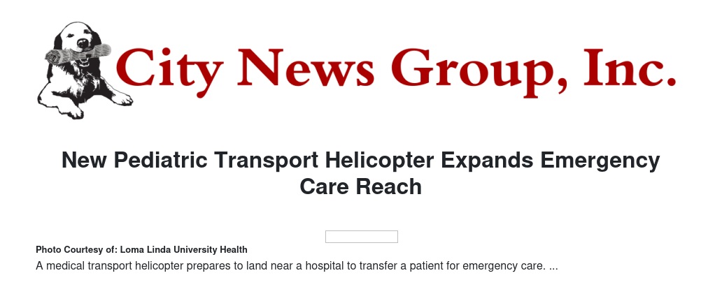 Emergency care capabilities have expanded with the addition of a new pediatric transport helicopter serving Loma Linda University Children’s Hospital.