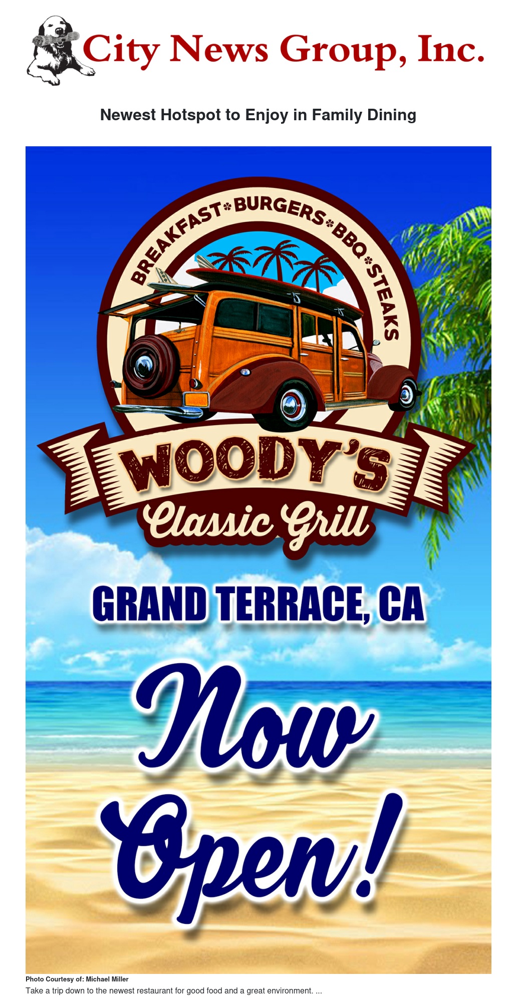 Woody’s Classic Grill of Grand Terrace opened its doors on October 1st, 2018. Woody’s Classic Grill is a full service 50’s – 60’s beach and surfing restaurant concept themed after the Woodies wood paneled car of that era. Step inside and you will be transported to a decade where life was simple, people were friendly, and the music was FUN! Woody’s is open for breakfast, lunch, and dinner and features over 100 different selections such as appetizers, salads, sandwiches, pastas, gourmet burgers, barbecue, entrees, steaks, seafood, and decadent desserts.