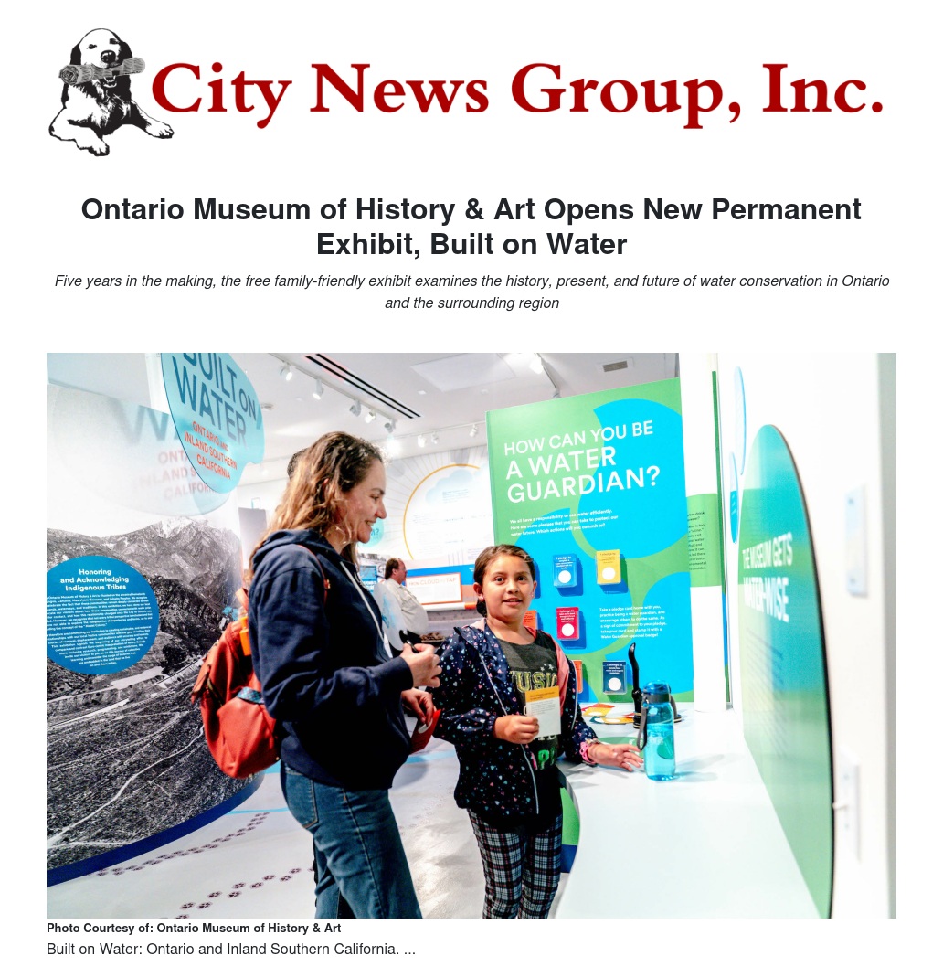 The Ontario Museum of History & Art presents Built on Water: Ontario and Inland Southern California, the new permanent exhibit that focuses on the history and future of water in the Ontario region, and brings together the story of local water agencies, regional tribes, agriculture, water conservation, and the creation of the City of Ontario. The free family-friendly and educational exhibit is now open with a Community Reception taking place Saturday, August 19 from 6-9 pm, in conjunction with the quarterly Ontario Art Walk.