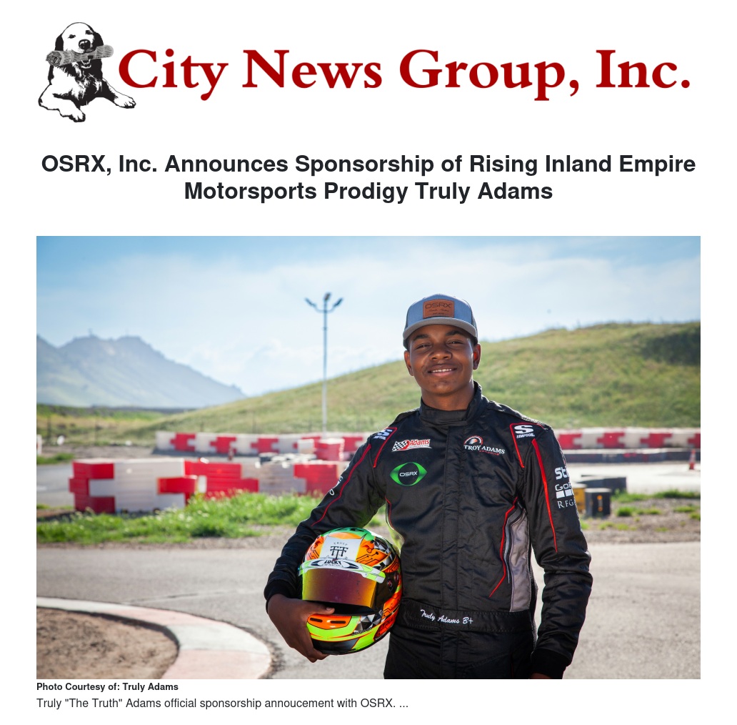 “OSRX is proud to support Truly Adams, a young athlete whose drive, discipline, and commitment to excellence mirrors the values that define our organization,” said Eric Garner, OSRX chief commercial officer. “As an American company, we believe in backing underdogs—those who fight uphill battles against larger, well-funded opponents with pure grit and determination. That’s our story as an upstart compounder in a world dominated by Big Pharma, and it’s Truly’s story as he climbs the ranks of global motor sports. We support people who earn their place through talent, work ethic and heart.”