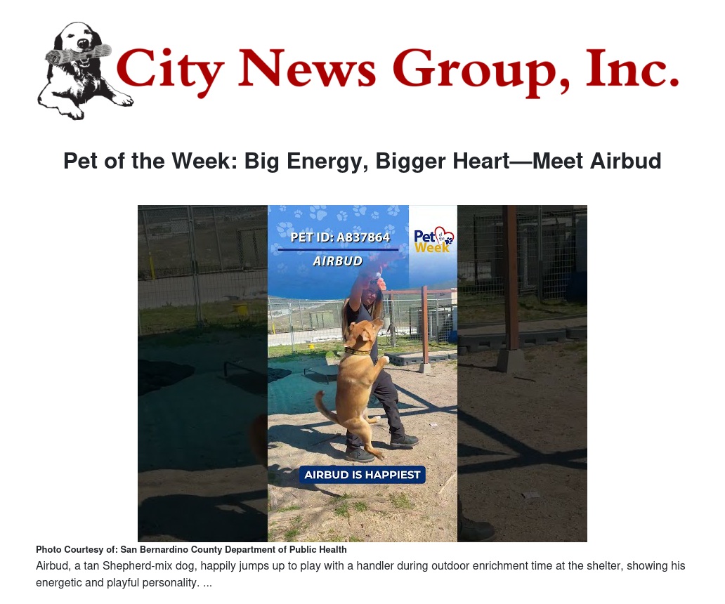 Pet of the Week: Big Energy, Bigger Heart—Meet Airbud by Stella Pierce - City News Group, Inc.