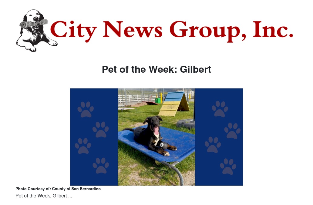 For more information about animals available for adoption, please visit San Bernardino County Animal Care at animalcare.sbcounty.gov/pets or call (800) 472-5609.