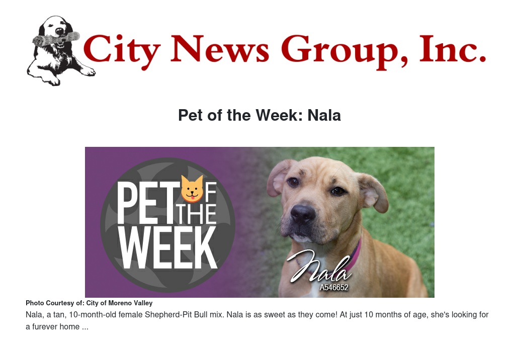If you would like to make Nala or any pet from the Moreno Valley Animal Shelter part of your family, please call 951.413.3790 or visit moval.org/pets.