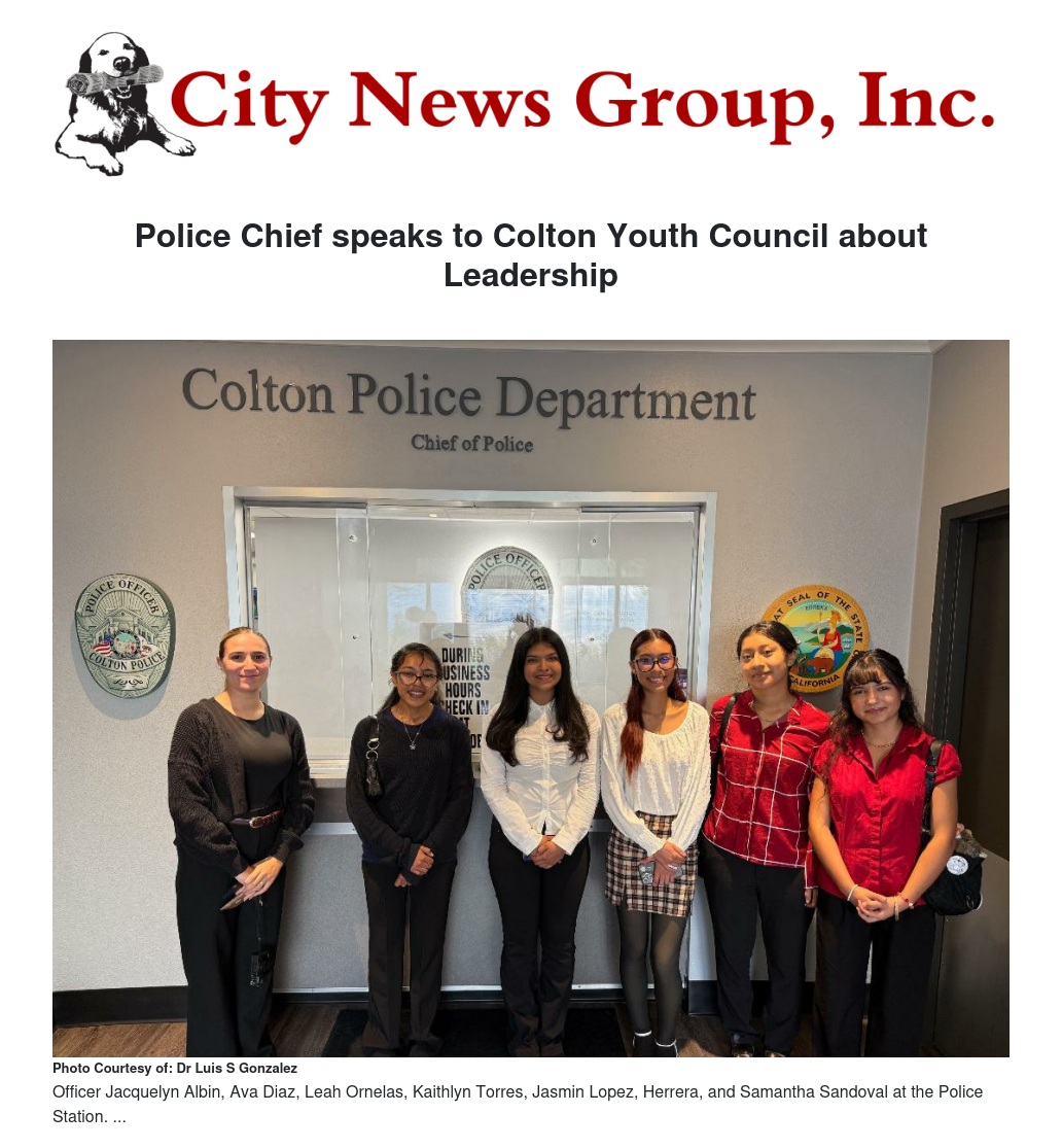 Police Chief speaks to Colton Youth Council about Leadership by Dr Luis S. Gonzalez - City News Group, Inc.