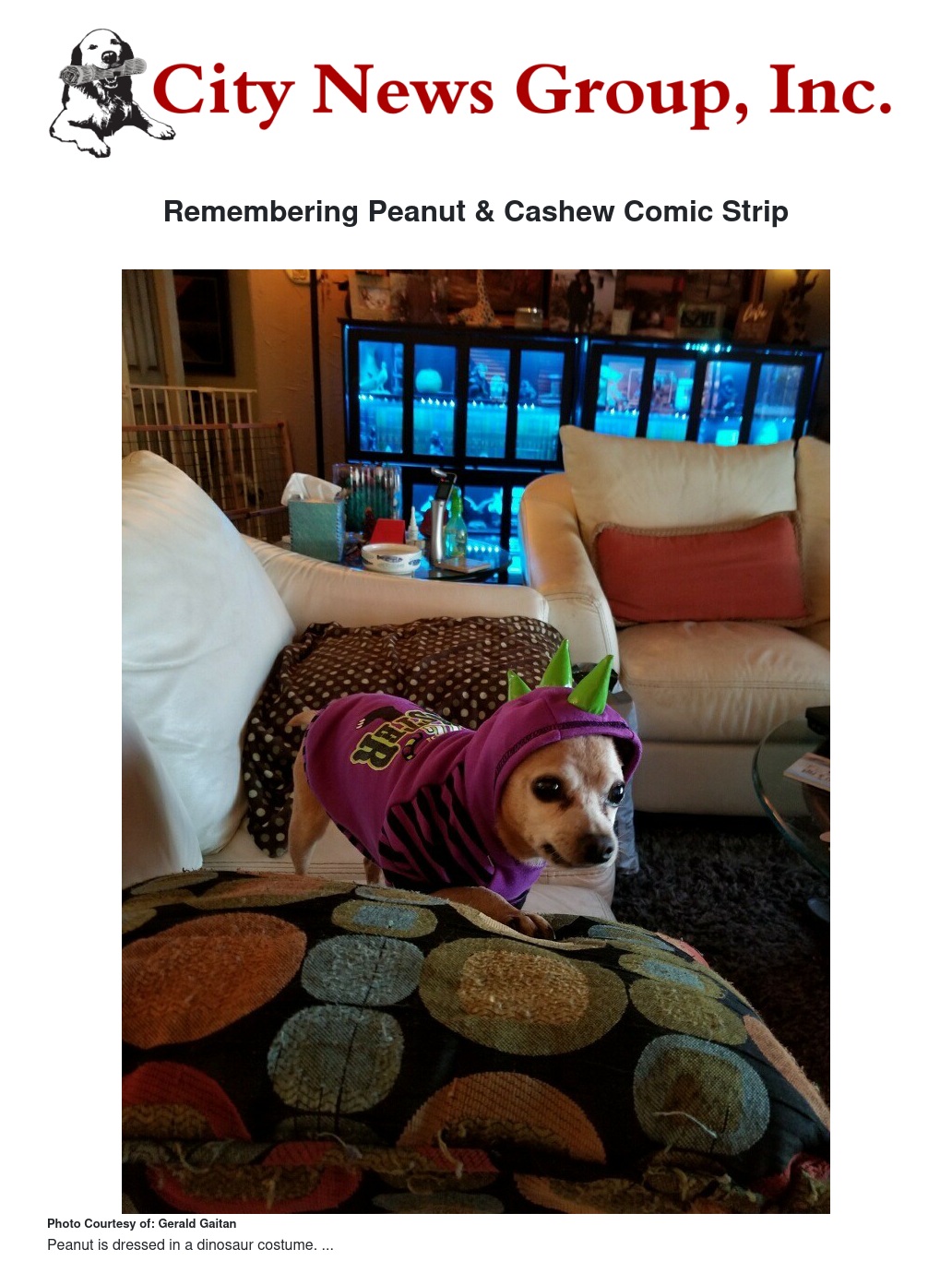The loveable "Peanut" who helped inspire the comic strip titled "Peanut and Cashew, has passed away. Along with his closed friend "Cashew". This team would provide many of our readers with laughable moments in their weekly episodes created by cartoonist Gerald Gaitan.