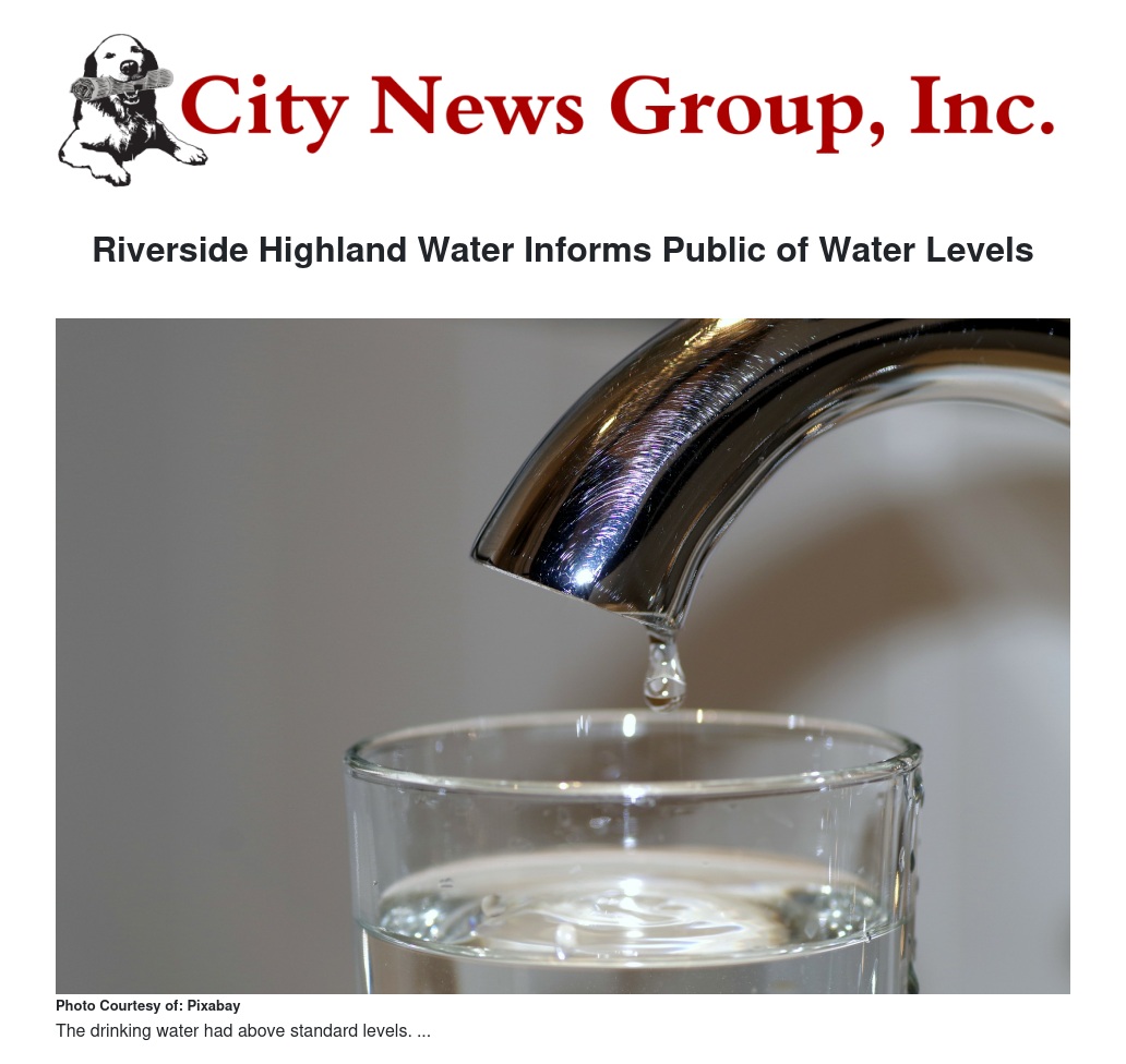 Riverside Highland Water Informs Public of Water Levels by April Reyna - City News Group, Inc.