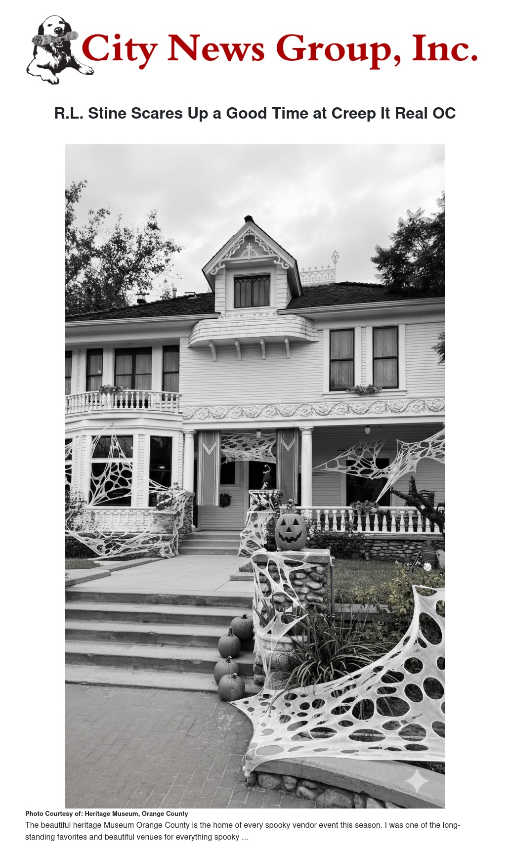 The R.L. Stine event was part of the larger Creep It Real OC festival, a three-day celebration of all things spooky. The entire festival was a massive success, with organizers calling it one of their most fun events ever. The atmosphere was electric and full of Halloween spirit, thanks to a variety of vendors, live music, and activities. The Heritage Museum of Orange County, with its historic Kellogg House temporarily transformed into the "House of Creepy Corridors," was the perfect eerie backdrop for the spooky festivities.