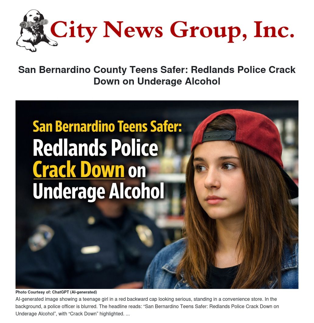 San Bernardino County Teens Safer: Redlands Police Crack Down on Underage Alcohol by Carl Baker - City News Group, Inc.